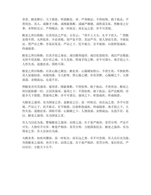 盖酷吏之行,虽一时权宜,而长远之患,亦不可忽视。