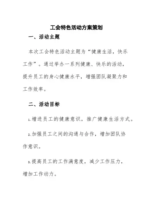 工会特色活动方案策划一、活动主题本次工会特色活动主题为“健康生活,快乐工作”。