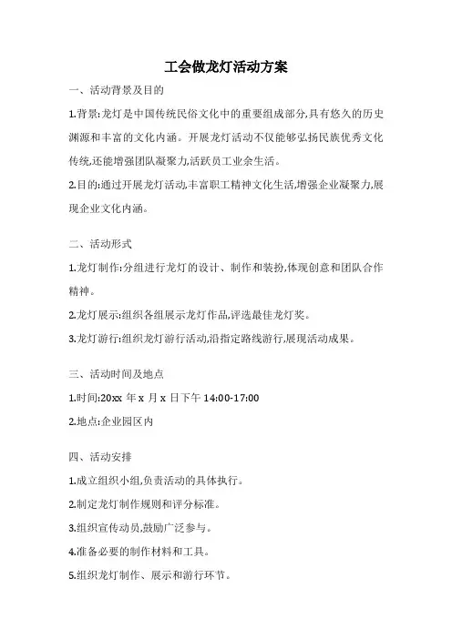 2.目的:通过开展龙灯活动,丰富职工精神文化生活,增强企业凝聚力,展现企业文化内涵。