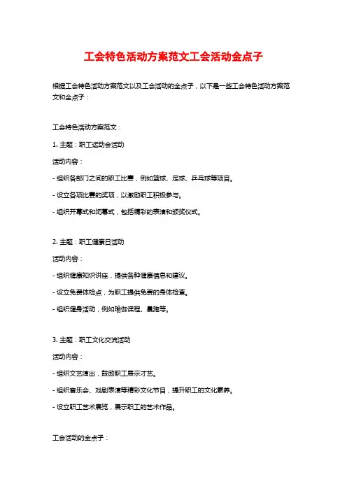 根据工会特色活动方案范文以及工会活动的金点子,以下是一些工会特色活动方案范文和金点子: