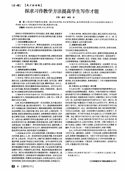 三、小学习作序列化训练的实效方法孩子们在中年级初学习作时,教师应提供范文,让他们模仿着去写,帮助他们开拓思路,以求入门。