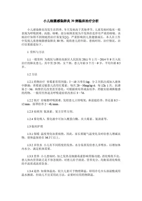方法回顾性分析30例重症肺炎患儿的临床资料。
