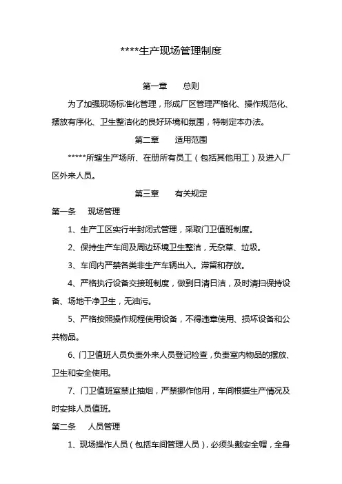 如何做好生产车间现场管理(精选5篇)第一篇:如何做好生产车间现场管理如何做好生产车间现场管理一、车间管理的主要任务1、健全车间生产组织,合理组织生产车间的中心任务是生产,围绕生产提高车间管理水平是车间管理的基本方向。