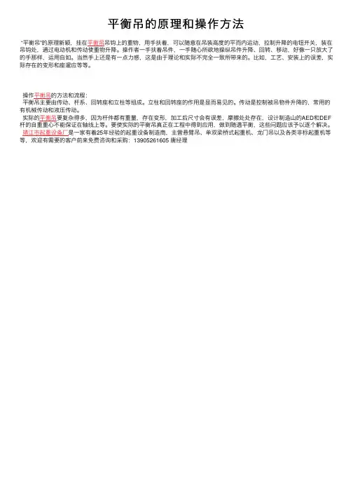 平衡吊工作原理平衡吊是一种常见的起重设备,它通过悬挂在吊臂上的吊钩来提升和移动重物。
