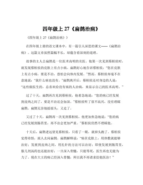 四年级上27《扁鹊治病》《四年级上 27《扁鹊治病》》在四年级上册的语文课本中,有一篇引人深思的课文——《扁鹊治病》。