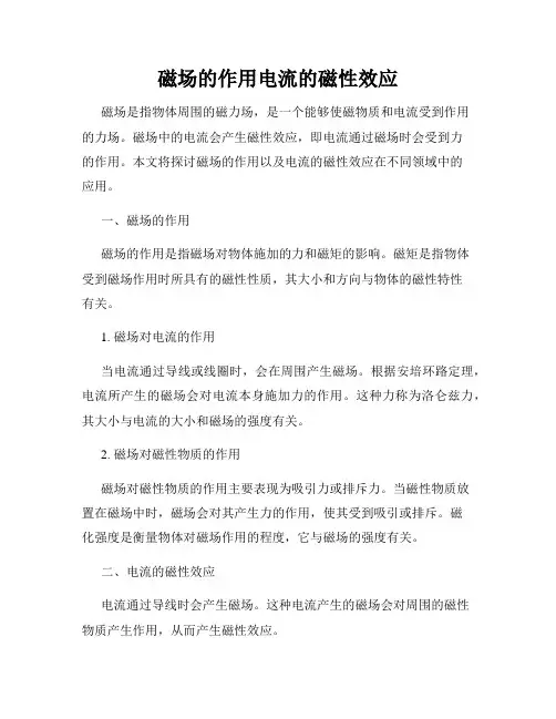 磁场的作用电流的磁性效应磁场是指物体周围的磁力场,是一个能够使磁物质和电流受到作用的力场。