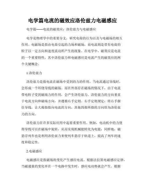 2. 电流与磁场的相互作用电流与磁场的相互作用主要体现在洛仑兹力的作用下。