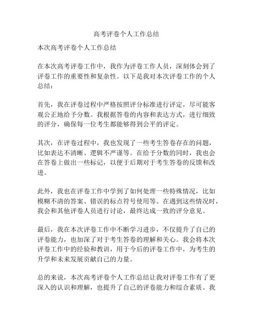 评卷是一项需要严谨和专注的任务,它对于学生的学习和成长具有重要意义。
