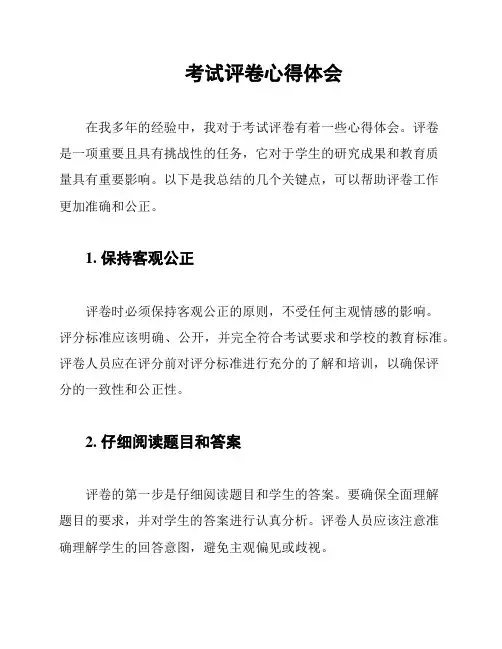 考试评卷心得体会在我多年的经验中,我对于考试评卷有着一些心得体会。