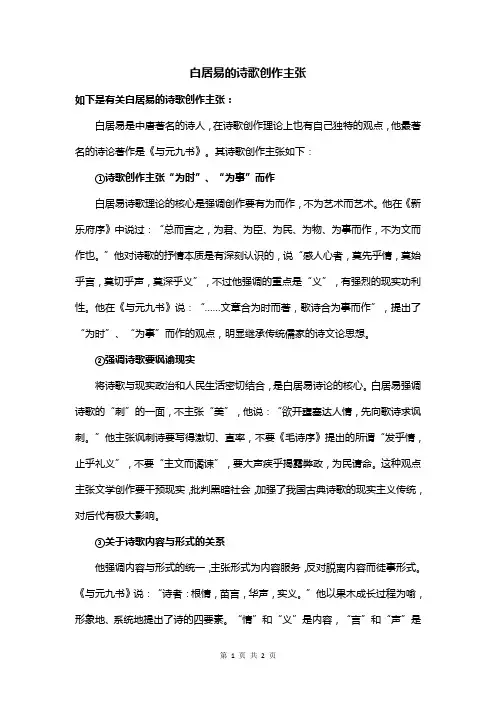 白居易的诗歌创作主张白居易的诗歌创作主张白居易不仅是现实主义诗人,还是一位杰出的诗论家。