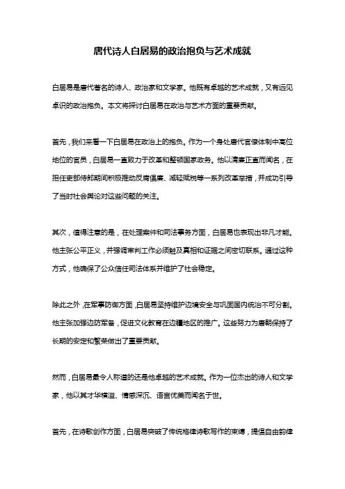 唐代诗人白居易的政治抱负与艺术成就白居易是唐代著名的诗人、政治家和文学家。