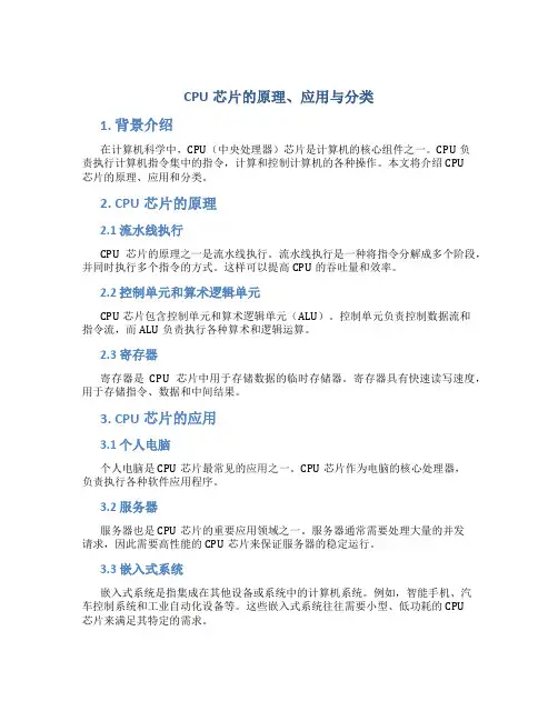 二、分类根据不同的指标,CPU可以分为多种类型。