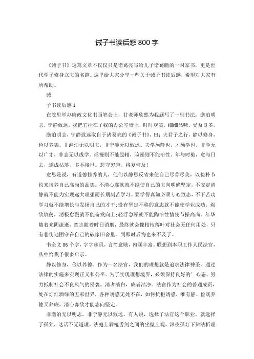 更多诸葛亮诫子书的读后感600字资料,在搜索框搜索诸葛亮诫子书的读后感600字(精选篇1)非淡泊无以明志,非宁静无以致远出自诸葛亮54岁时写给他8岁儿子诸葛瞻的诫子书,这既是诸葛亮一生经历的总结,更是对他儿子的要求。