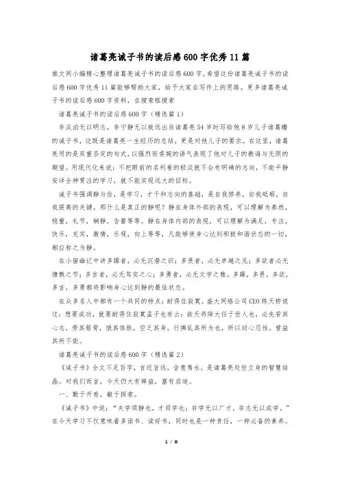 诸葛亮诫子书的读后感600字优秀11篇推文网小编精心整理诸葛亮诫子书的读后感600字,希望这份诸葛亮诫子书的读后感600字优秀11篇能够帮助大家,给予大家在写作上的思路。