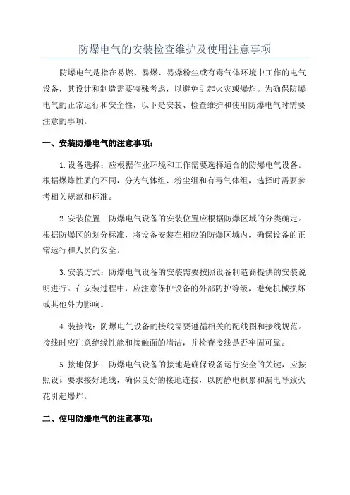 三、防爆电气设备的安装3.1 使用专业的电气工程师进行防爆电气设备的安装和布线工作。