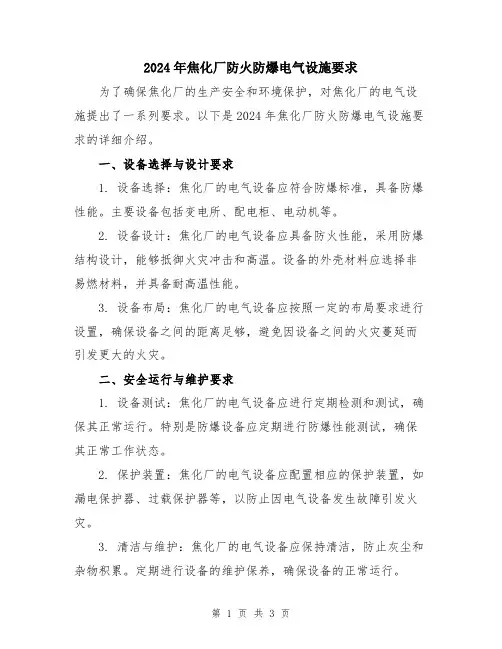 2024年焦化厂防火防爆电气设施要求为了确保焦化厂的生产安全和环境保护,对焦化厂的电气设施提出了一系列要求。