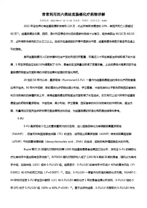 4.FOLFIRI方案FOLFIRI方案也是一种常用的大肠癌化疗方案,主要由氟尿嘧啶、伊立替康(Irinotecan)和银杏碱组成。