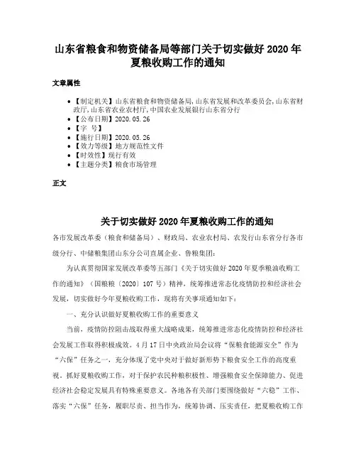 山东省粮食和物资储备局2020年度法治政府建设工作报告文章属性•【制定机关】山东省粮食和物资储备局•【公布日期】2021.02.26•【字号】•【施行日期】2021.02.26•【效力等级】地方规范性文件•【时效性】现行有效•【主题分类】机关工作正文山东省粮食和物资储备局2020年度法治政府建设工作报告省政府办公厅:2020年,山东省粮食和储备局全面贯彻落实党的十九大和十九届二中、三中、四中、五中全会精神,深入学习贯彻习近平法治思想和中央全面依法治国工作会议精神,紧紧围绕省委全面依法治省委员会工作部署,扎实推进法治机关建设工作,为深化“放管服”改革、推进治理体系和治理能力现代化、助推我省经济高质量发展提供了有力的法治保障。