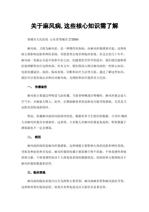 关于麻风病,这些核心知识需了解邹城市人民医院山东省邹城市2735002麻风病,又称为麻风症,是一种慢性传染病,由麻风杆菌感染引起。
