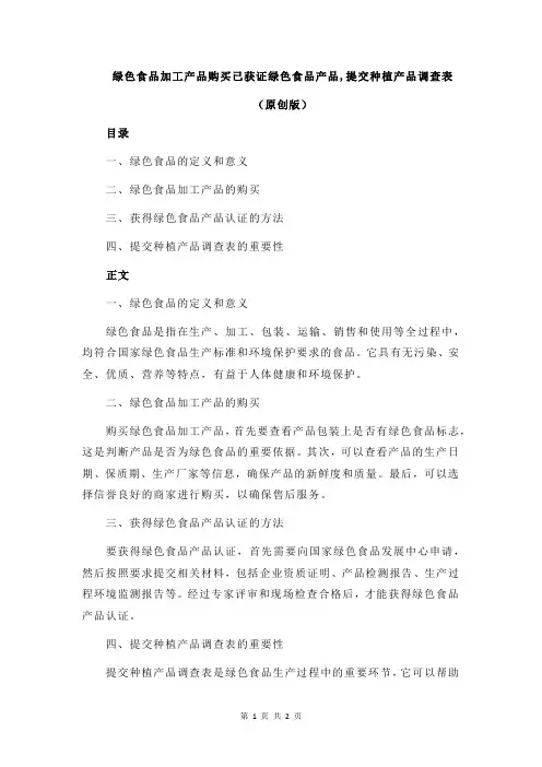 绿色食品加工产品购买已获证绿色食品产品,提交种植产品调查表