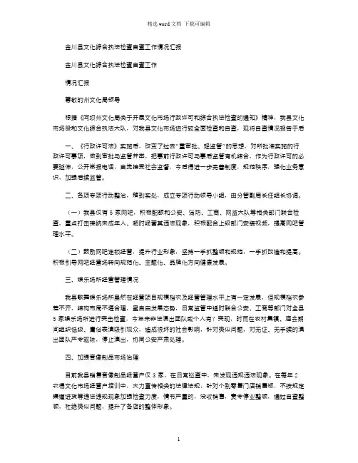 2024年文化行政执法自查报告一、引言本报告是根据我国文化行政执法工作的实际情况,向上级主管部门和社会公众汇报2024年度文化行政执法自查情况。