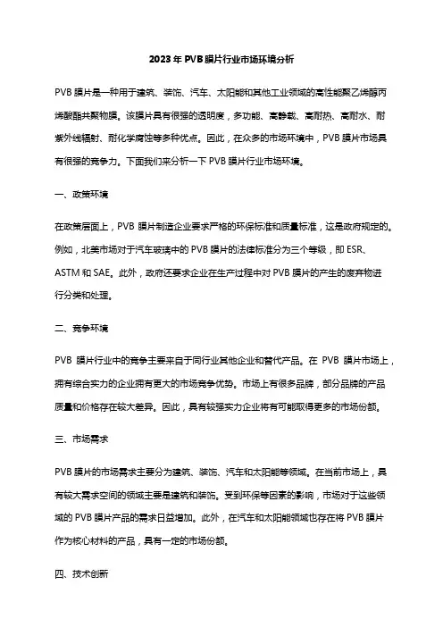 2023年PVA薄膜行业市场调查报告根据对PVA薄膜行业的市场调研,以下为PVA薄膜行业市场调查报告:第一部分:市场概述PVA(聚乙烯醇)薄膜是一种功能性薄膜材料,广泛用于农业、食品包装、医疗、电子、建筑等领域。