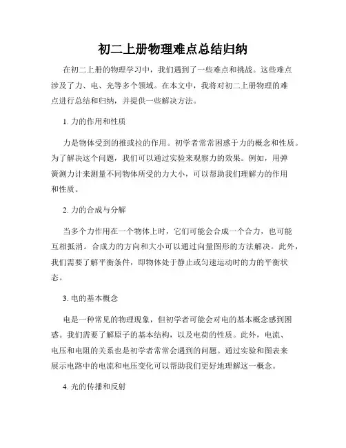 初二上册物理难点总结归纳在初二上册的物理学习中,我们遇到了一些难点和挑战。