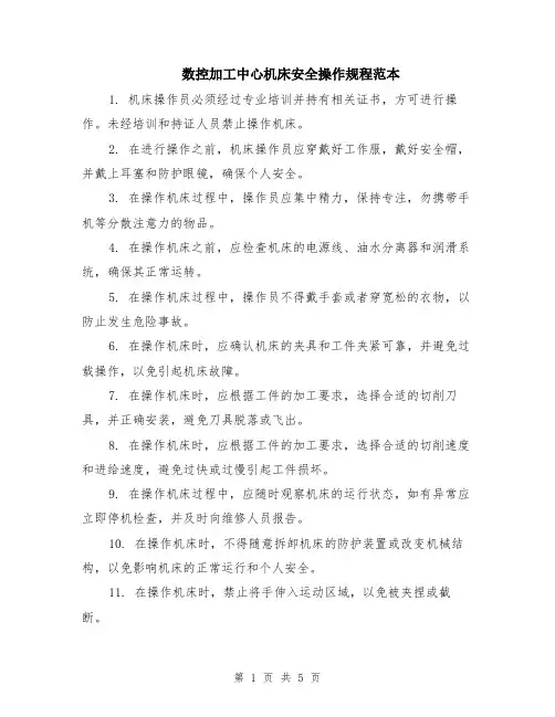 数控加工中心机床安全操作规程范本1. 机床操作员必须经过专业培训并持有相关证书,方可进行操作。