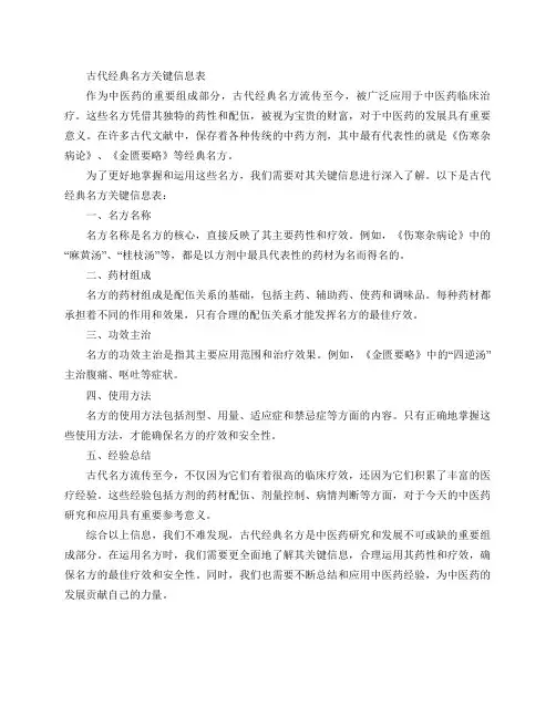 古代经典名方关键信息古代经典名方,哎,这可真是个宝藏,咱们今天就来聊聊这些了不得的配方。