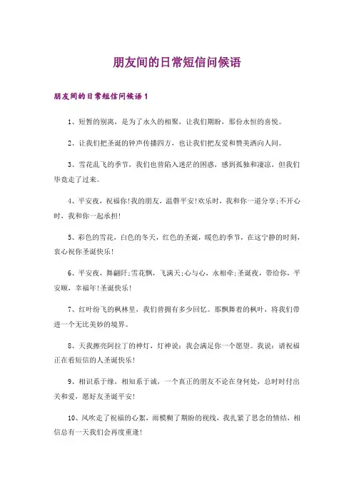 朋友间的日常短信问候语朋友间的日常短信问候语11、短暂的别离,是为了永久的相聚,让我们期盼,那份永恒的喜悦。