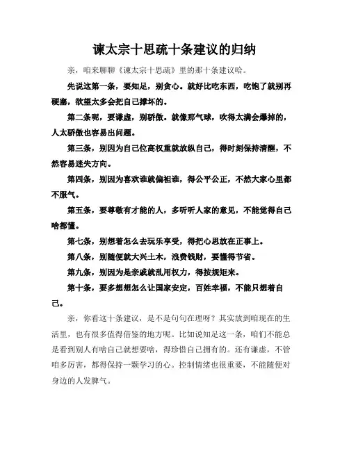 1. 《谏太宗十思疏》优秀范文一:立德篇这篇优秀范文从道德立场出发,强调一个君主应具备的品质和修养。
