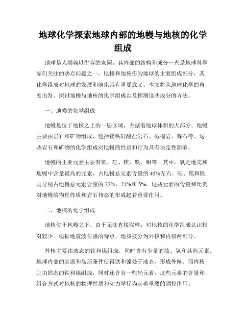 地球化学探索地球内部的地幔与地核的化学组成地球是人类赖以生存的家园,其内部的结构和成分一直是地球科学家们关注的热点问题之一。