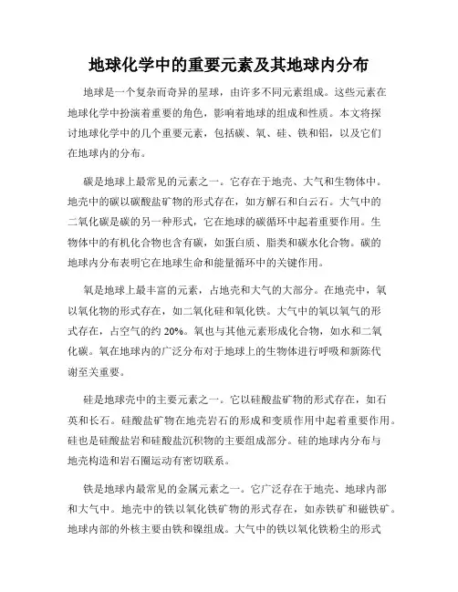 地球化学中的重要元素及其地球内分布地球是一个复杂而奇异的星球,由许多不同元素组成。