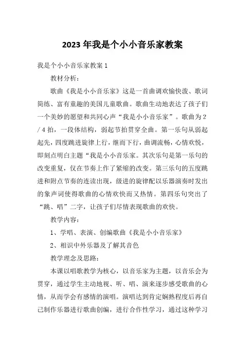 2023年《我是小小音乐家》教案一、教学内容本节课选自《音乐课程标准》第三册第六单元《我是小小音乐家》。