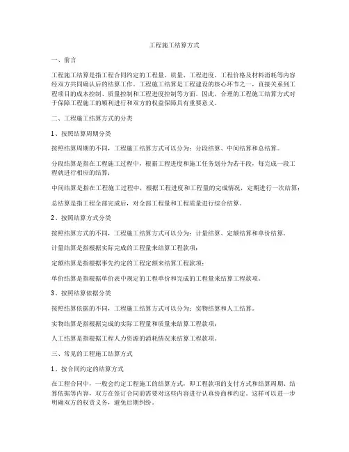 5. 阶段结算方式阶段结算方式是指在工程过程中,按照工程进度的完成情况,分阶段进行结算。