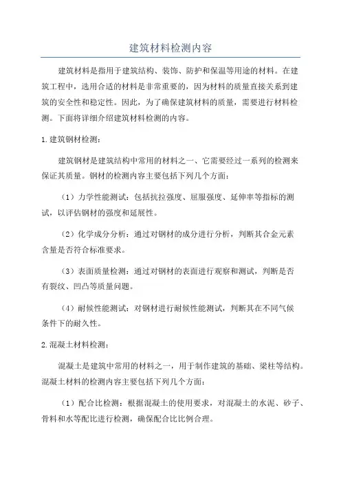 建筑材料与检测答案建筑材料是建筑工程中不可或缺的重要组成部分,它直接影响着建筑物的质量、安全和耐久性。
