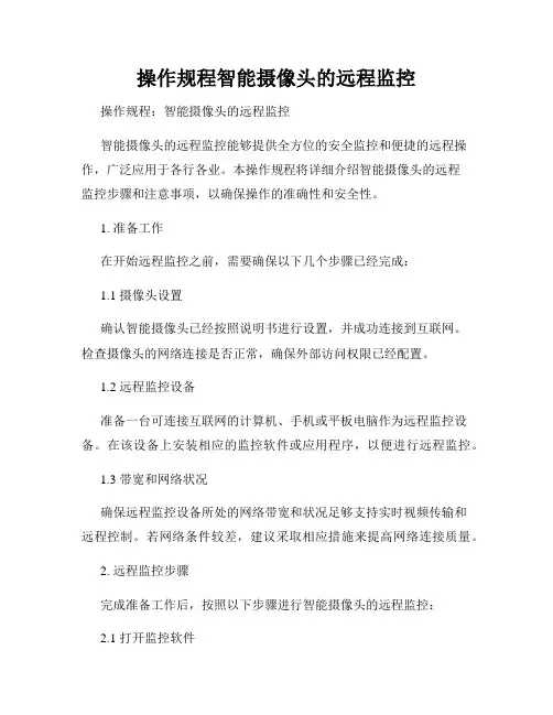 操作规程智能摄像头的远程监控操作规程:智能摄像头的远程监控智能摄像头的远程监控能够提供全方位的安全监控和便捷的远程操作,广泛应用于各行各业。