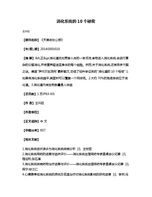 研究人体消化系统的结构和功能人体消化系统论文(1)人体消化系统是一个复杂的系统,包含了许多不同的器官和组织,它们共同协作完成食物的消化和吸收。