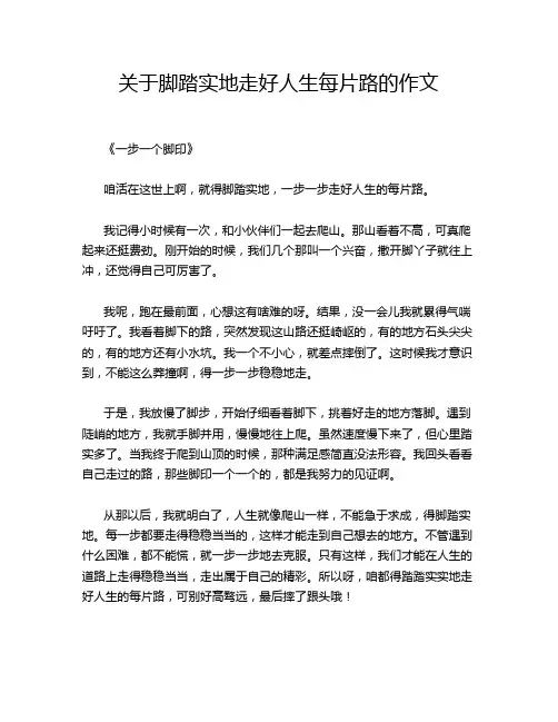 千里之行始于足下作文脚踏实地书写无悔的人生之旅在漫长而艰辛的人生旅途中,我们常常渴望成功和追求梦想,然而,要想实现自己的目标和理想,必须从脚踏实地的态度出发。