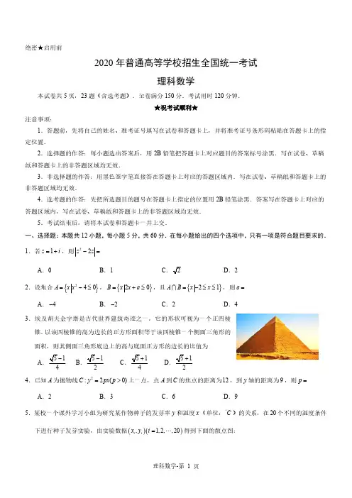 2020年普通高等学校招生全国统一考试理科综合能力测试注意事项1.答卷前,考生务必将自己的姓名,准考证号填写在答题卡上。
