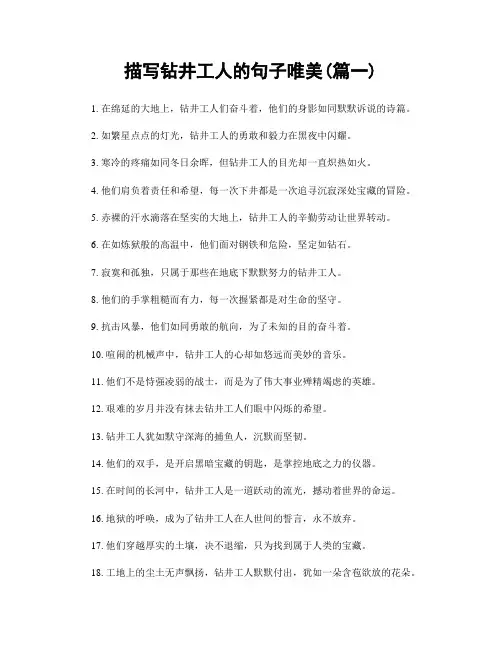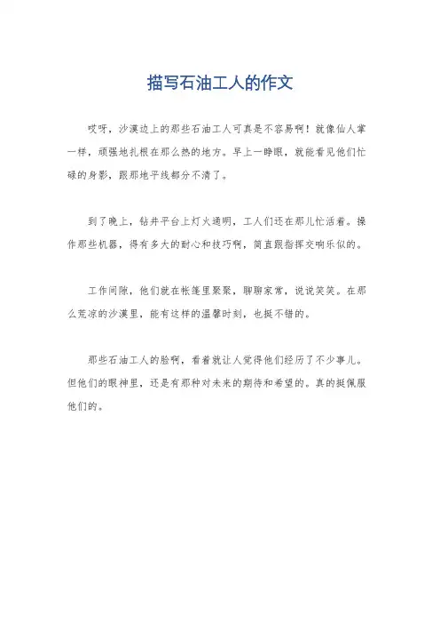 描写石油工人的作文在我们的生活中,有这样一群人,他们远离繁华的都市,身处荒凉的野外,与石油为伴,为我们的生活默默奉献着。