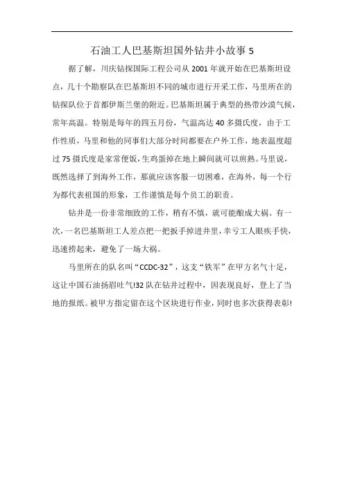 石油钻井职工先进事迹演讲尊敬的领导、各位同事:今天,我在这里很荣幸地向大家介绍几位石油钻井职工先进事迹。