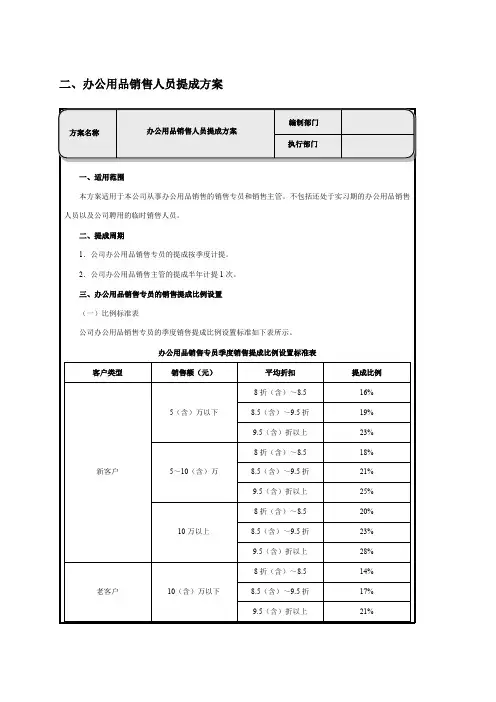 二、办公用品销售人员提成方案