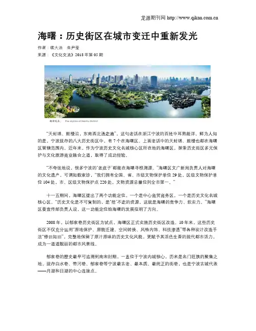 海曙:历史街区在城市变迁中重新发光作者:续大治朱尹莹来源:《文化交流》2018年第05期“天封塔、鼓楼沿,东南西北通走遍”,这句老话在浙江宁波的百姓中耳熟能详。