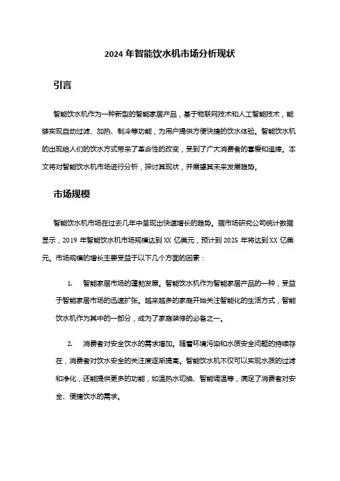 市场趋势分析未来饮水机市场将呈现以下几个趋势:1.智能化发展:智能化已成为饮水机市场的主要趋势。