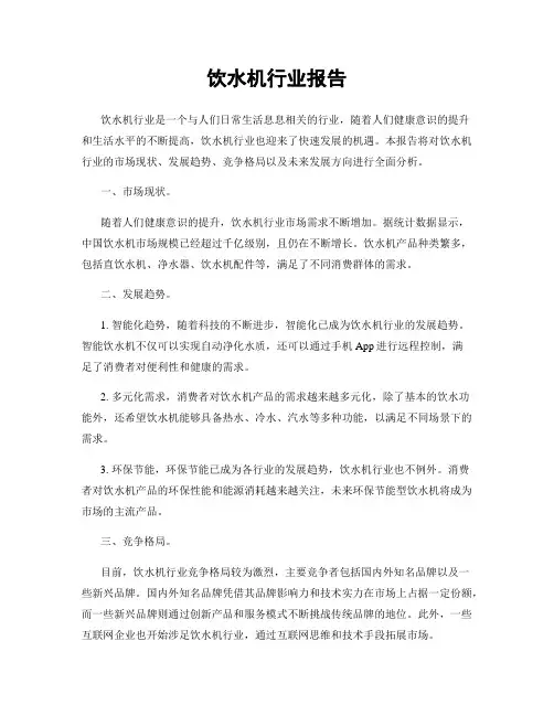 饮水机市场分析现状1. 市场概述饮水机市场是指以提供直饮水服务为目的的设备市场。