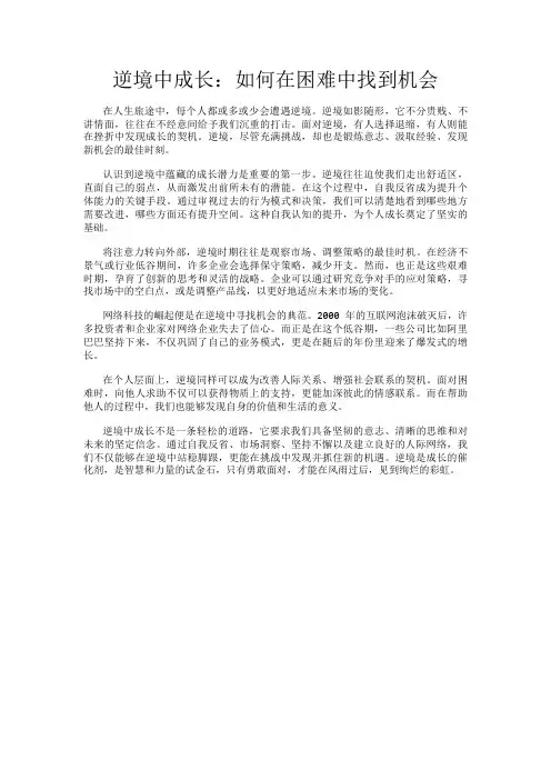 三、寻找逆境中蕴藏的机会逆境中,往往有着意想不到的机会和可能性。