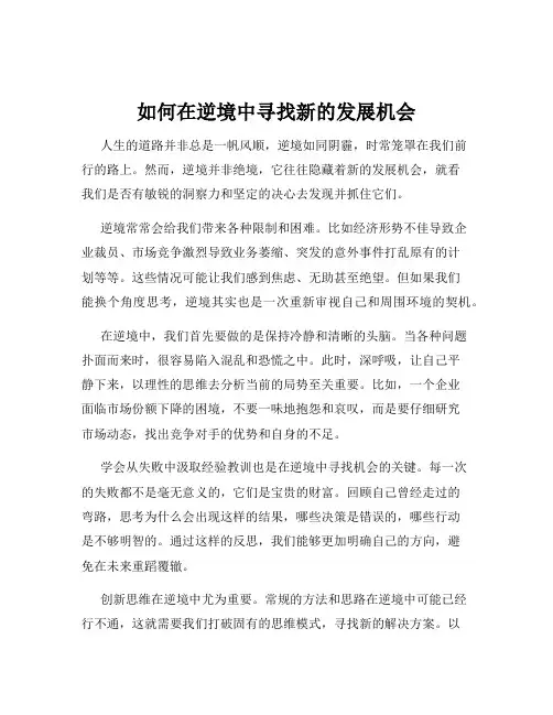 如何在逆境中寻找新的发展机会和突破口人生的道路并非总是一帆风顺,逆境常常不期而至。