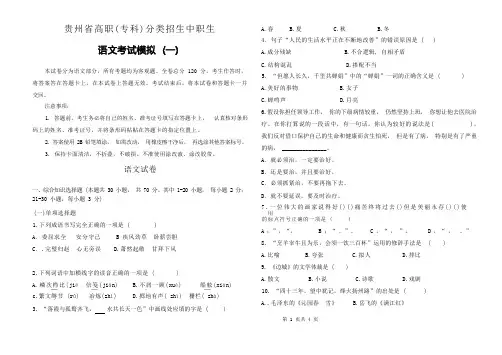 中职语文抽考模拟题(一)《中职语文》试题闭卷考试时间120分钟注意事项:1.满分:100分。