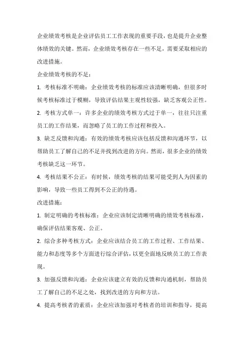 然而,企业绩效考核存在一些不足,需要采取相应的改进措施。